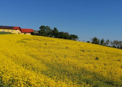 Um 6.00 Uhr hat’s noch ordentlich geregnet. Beim Start um 8.00 Uhr vom Parkplatz Stadtbad, 20 Radler in 10 Pkw’s, waren wir hoffnungsvoll, dass es ein trockener Radtag werden wird. Von Ardagger aus, bis Grein am Donauradweg, ging unsere Route dann in einer mäßigen, aber etwas längeren Steigung nach Bad Kreuzen. Von der Burg Kreuzen erstreckte sich unser Blick über die hügelige Landschaft des Mühlviertel, am Horizont die markante Burg Clam. Bei der Weiterfahrt fiel einigen Teilnehmer auf, dass in einer Höhenlage zwischen 500 und 600 m nicht nur schon abgemähte Wiesen sondern auch Getreidefelder unseren Weg säumten. Nach einer längeren Abfahrt ins Gießenbachtal kehrten wir im Gasthof Aumühle (Seminar- und Wellnesshotel) zum Mittagessen ein – auf der Terrasse angenehm warm und sonnig.